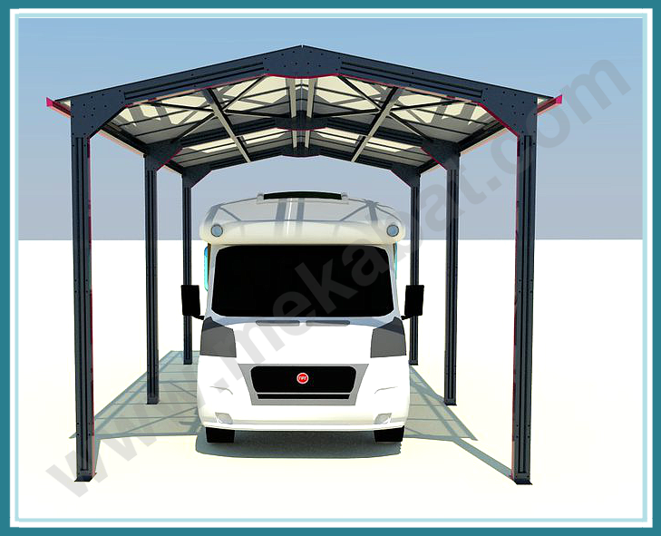 La gamme des abris camping-cars SKY-CAR vous permet de personnaliser la couleur de votre charpente et les matériaux de couverture utilisés.