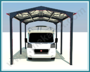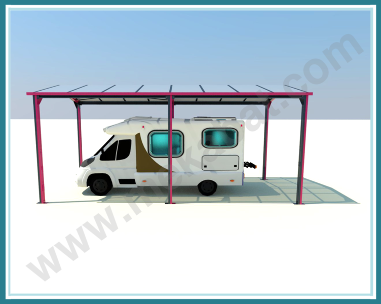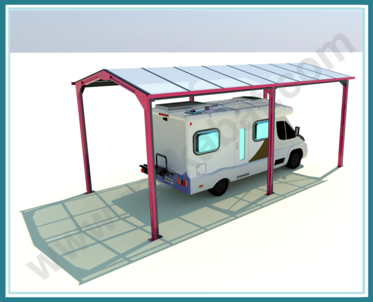 Cet abri camping car fermé en tôles de bardage peut recevoir les options du SKY-CAR présenté ci-dessous, à savoir la charpente laquée aux couleurs de votre choix, la couverture en polycarbonnate ainsi que les côtés ou du panneau sandwich en bardage et couverture. Dimensions 8x4.