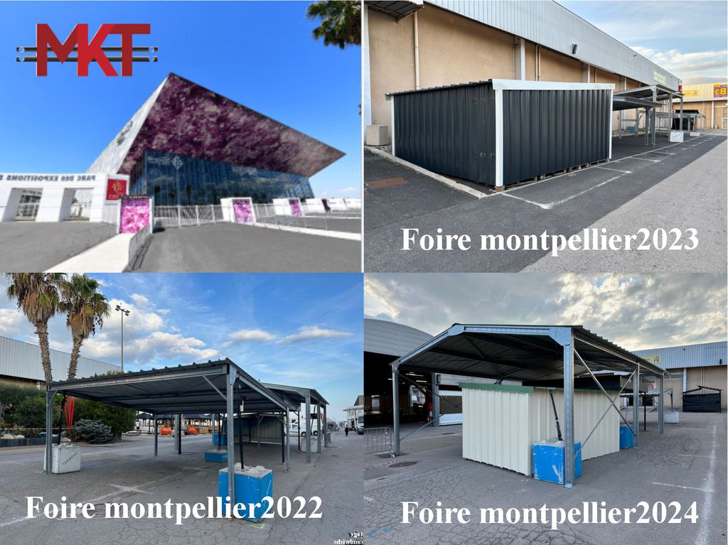 Le salon de la foire internationale de Montpellier va ouvrir ses portes le 11 octobre 2024. Depuis 3 ans nous exposons nos gammes de charpentes métalliques avec succès, le montage du salon va débuter lundi 7 octobre 2024. Nous vous tiendrons informés du déroulement de l'installation, d'ores et déjà les modèles exposés sont mis à la vente à prix d'usine;